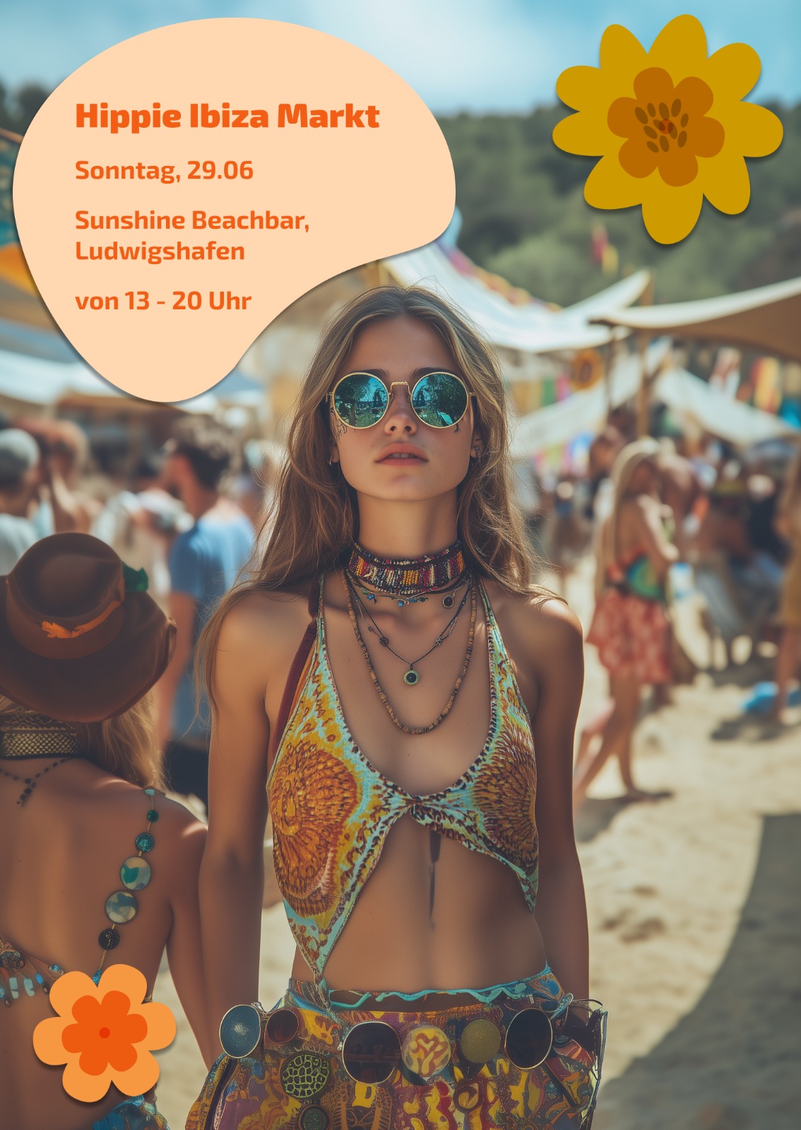 Am 29.06.25 erwartet euch an der Sunshine Beachbar ein flippiger Hippie Ibiza Markt mit einzigartiger Mode für Sie und Ihn, handgefertigtem Schmuck, besonderem HomeDekor, GlitzerTattoos, einem Mal- Kunst- Workshop am See sowie kühle Getränke, Aperol- Sprizz und leckeren Steak. Dazu für unsere Kleinen Kinderschmicken und Seifenblasen.